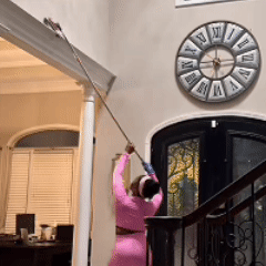 - The TurboMop 360° Spinning Wall Mop lets you clean walls, floors, ceilings, and more without heavy lifting or ladders. Its rotating mop head reaches high and low spots with ease. The reusable microfiber pad attracts and lifts dirt for a deep clean. The telescopic handle extends, so you can comfortably reach tall walls and tricky corners, making housework faster and easier.